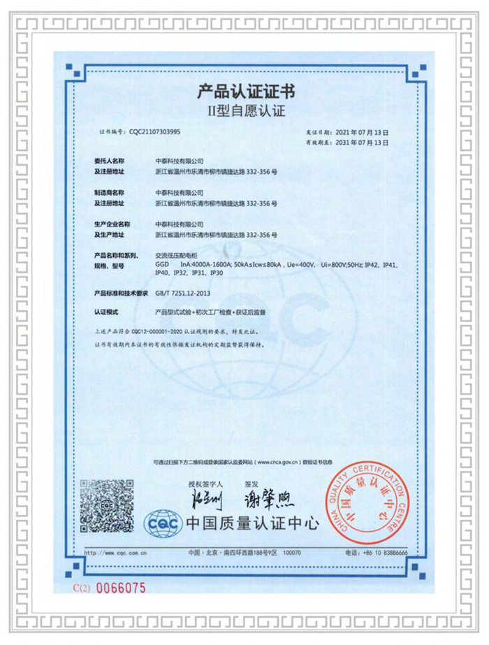 **質(zhì)量認證產(chǎn)品認證證書